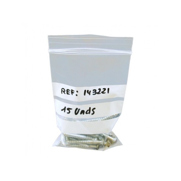 BOLSAS DE PLASTICO CON AUTOCIERRE ZIP Y BANDAS DE ESCRITURA.