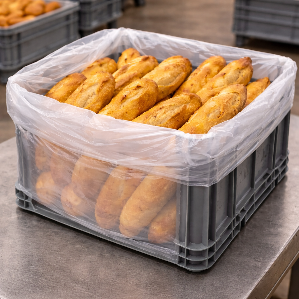 - Panaderías y obradores: masas, pan recién hecho, cajas de producto, almacenaje higiénico.